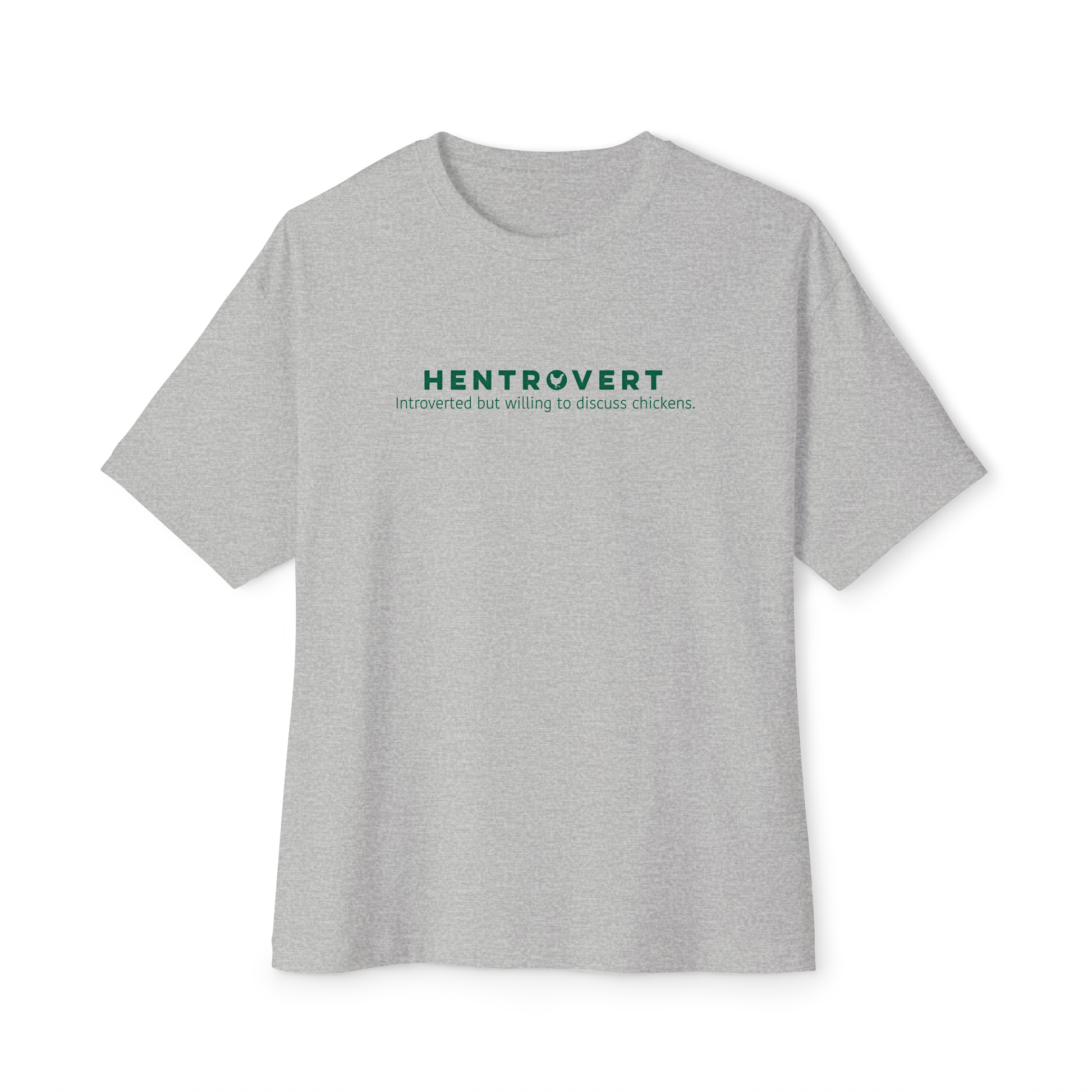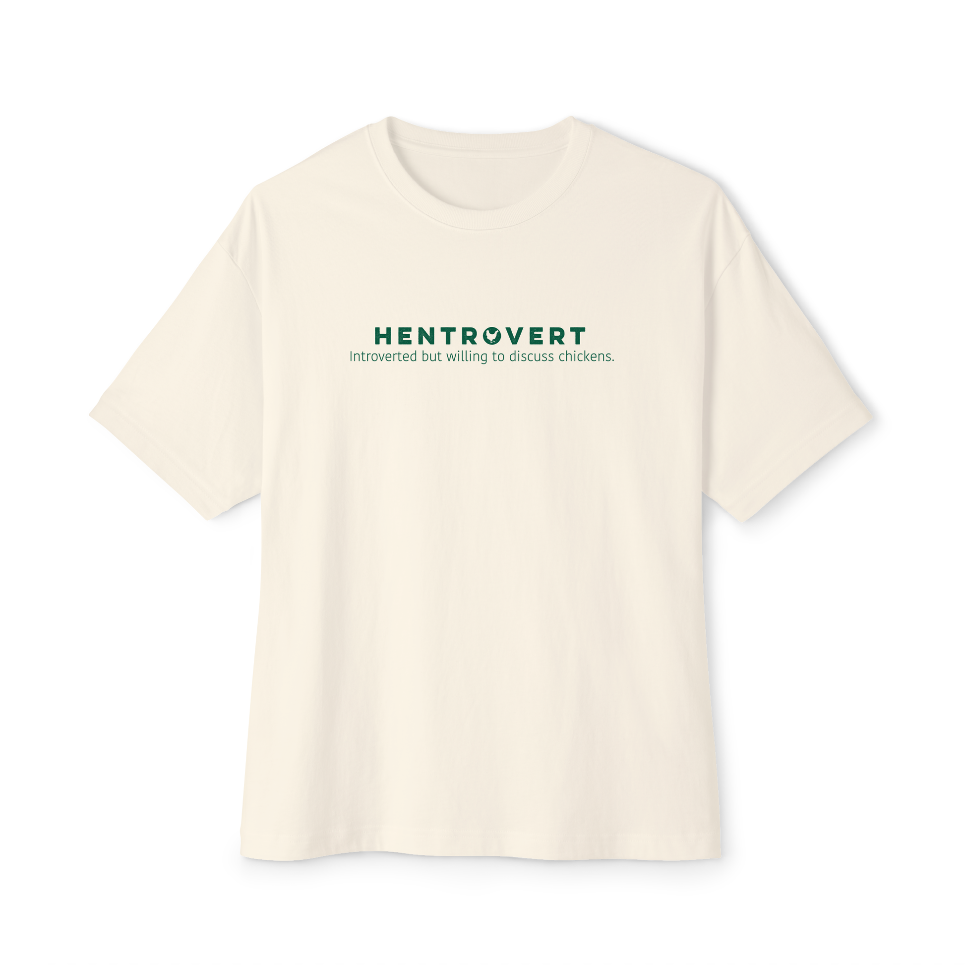 HENTROVERT INTROVERT BUT WILLING TO TALK ABOUT CHICKENS UNISEX OVERSIZED BOXY TEE